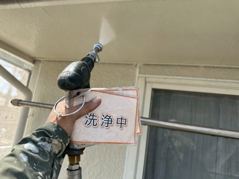 【洗浄】長年蓄積された頑固な汚れを隅々まで綺麗に洗浄していきます。シーリング工事①