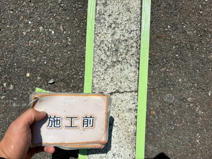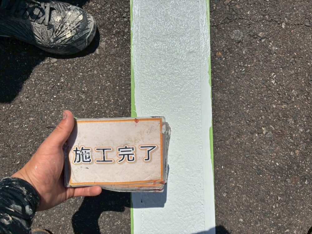 【上塗り】塗料を塗り重ね、色ムラを無くし美しく仕上げます。駐車場ライン引き