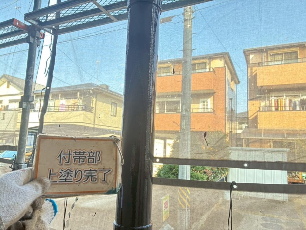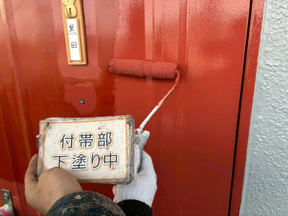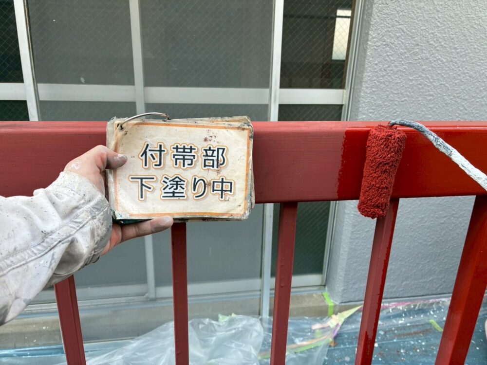【下塗り】錆び止め塗料を塗布し、鉄部の錆び防止をします。