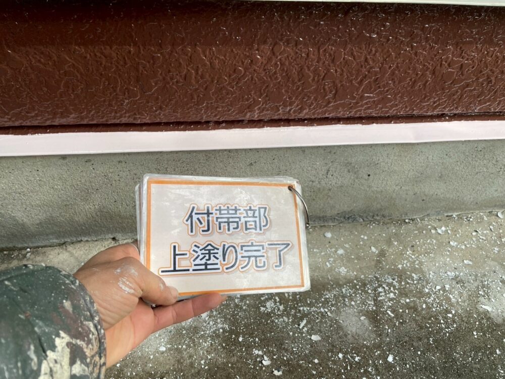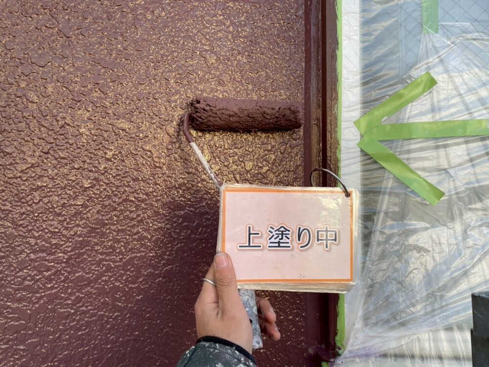 【上塗り】塗料を3回塗り重ねることで外壁の艶が増し、紫外線や雨水に強い耐久性のある外壁に仕上がります。