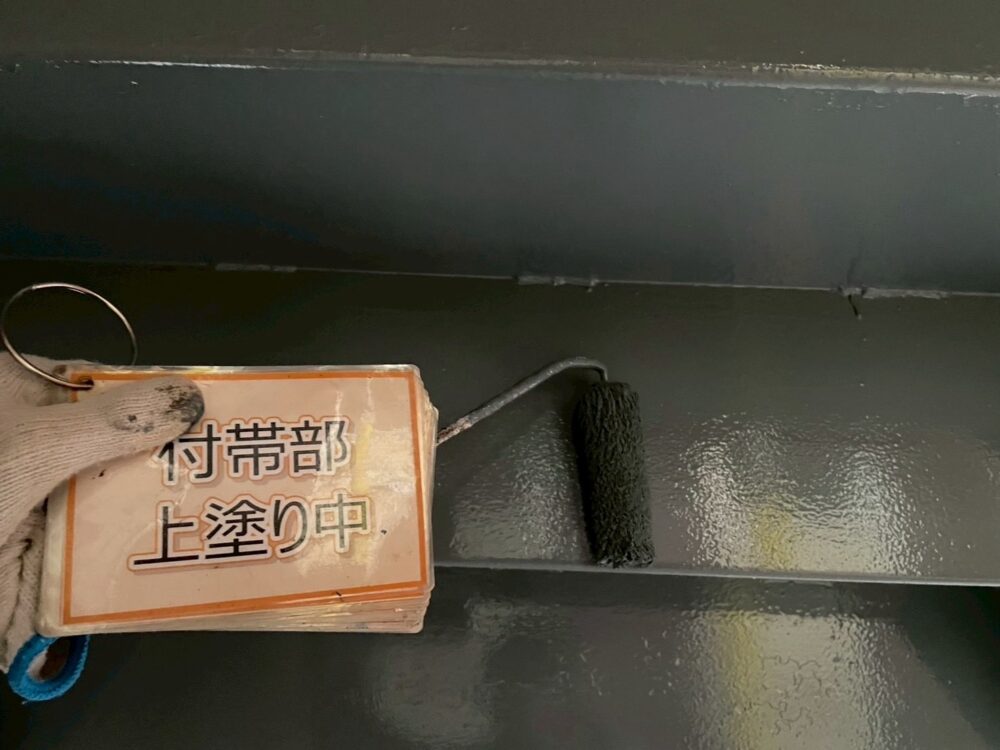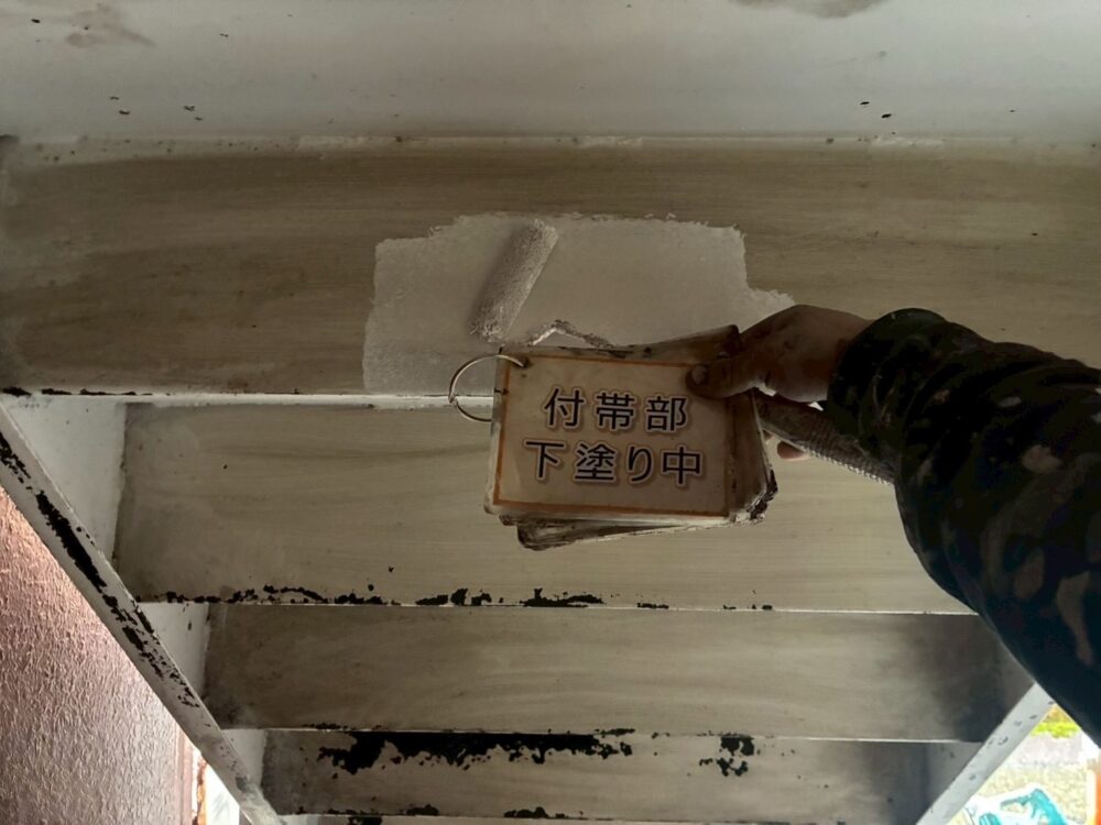 【下塗り】錆び止め塗料を塗布し、鉄部の錆び防止をします。