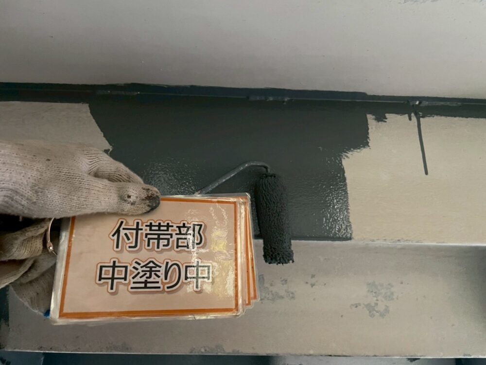 【中塗り】きれいなラインを引くために養生をし、塗料を塗布していきます。