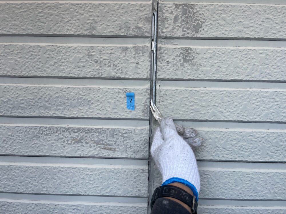 【撤去】経年により劣化したシーリング剤を撤去します。