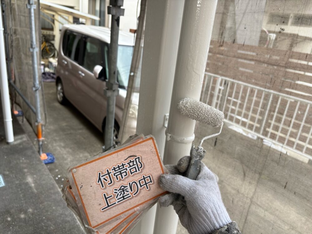 【下塗り】錆び止め塗料を塗布し、鉄部の錆び防止をします。
